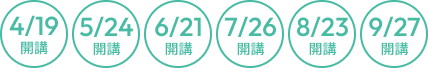 受講日程は、4月・5月・6月・7月・8月・9月開催のいずれかを選択してください。ただし、ライフデザイン総合学科は、受講科目を変更すれば複数日程への参加が可能です。