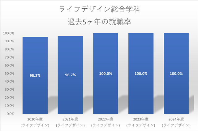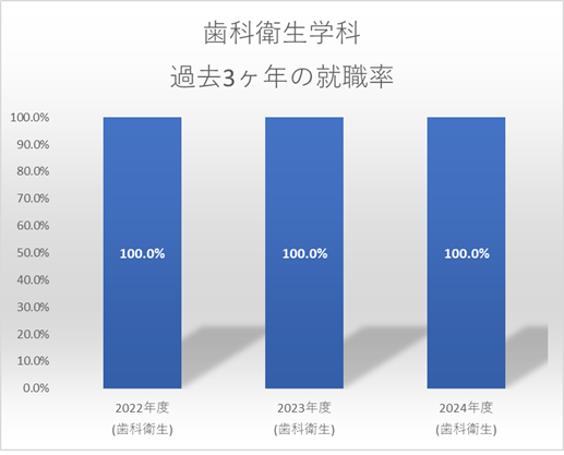ライフデザイン総合学科、歯科衛生学科、医療事務総合学科の就職率(就職希望者に対する就職者数)についてお知らせいたします。歯科衛生学科は、2020年4月設置のため、2022年度(23年3月卒業)より掲出。※歯科衛生学科は3年制医療事務総合学科は2023年4月設置のため、2024年度(25年3月卒業)データのみ掲出。