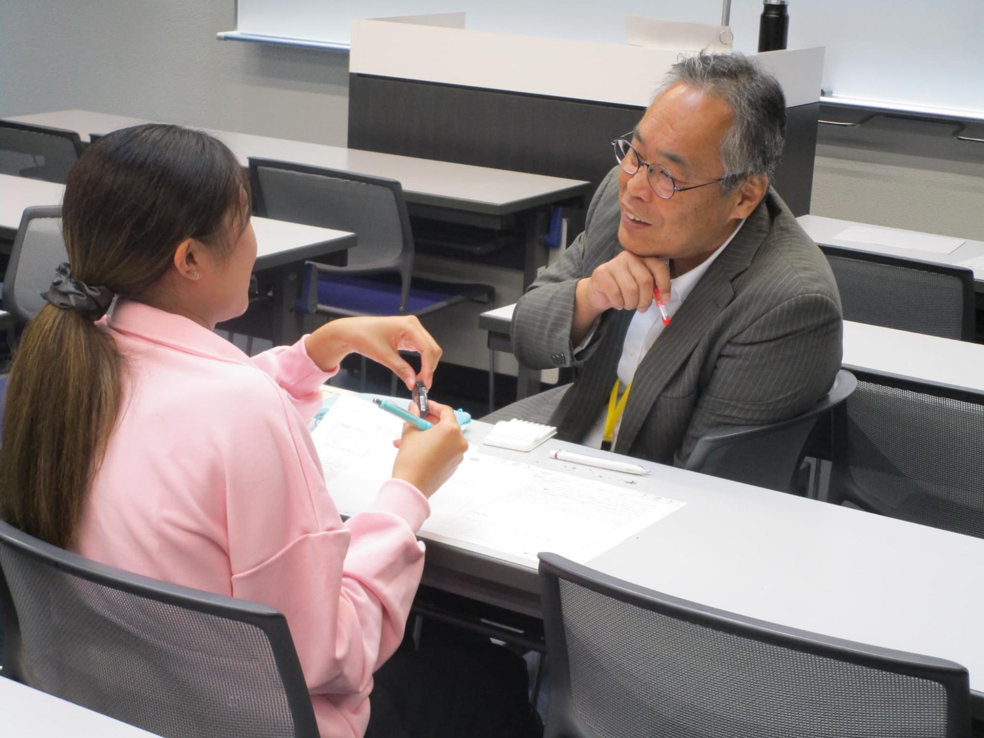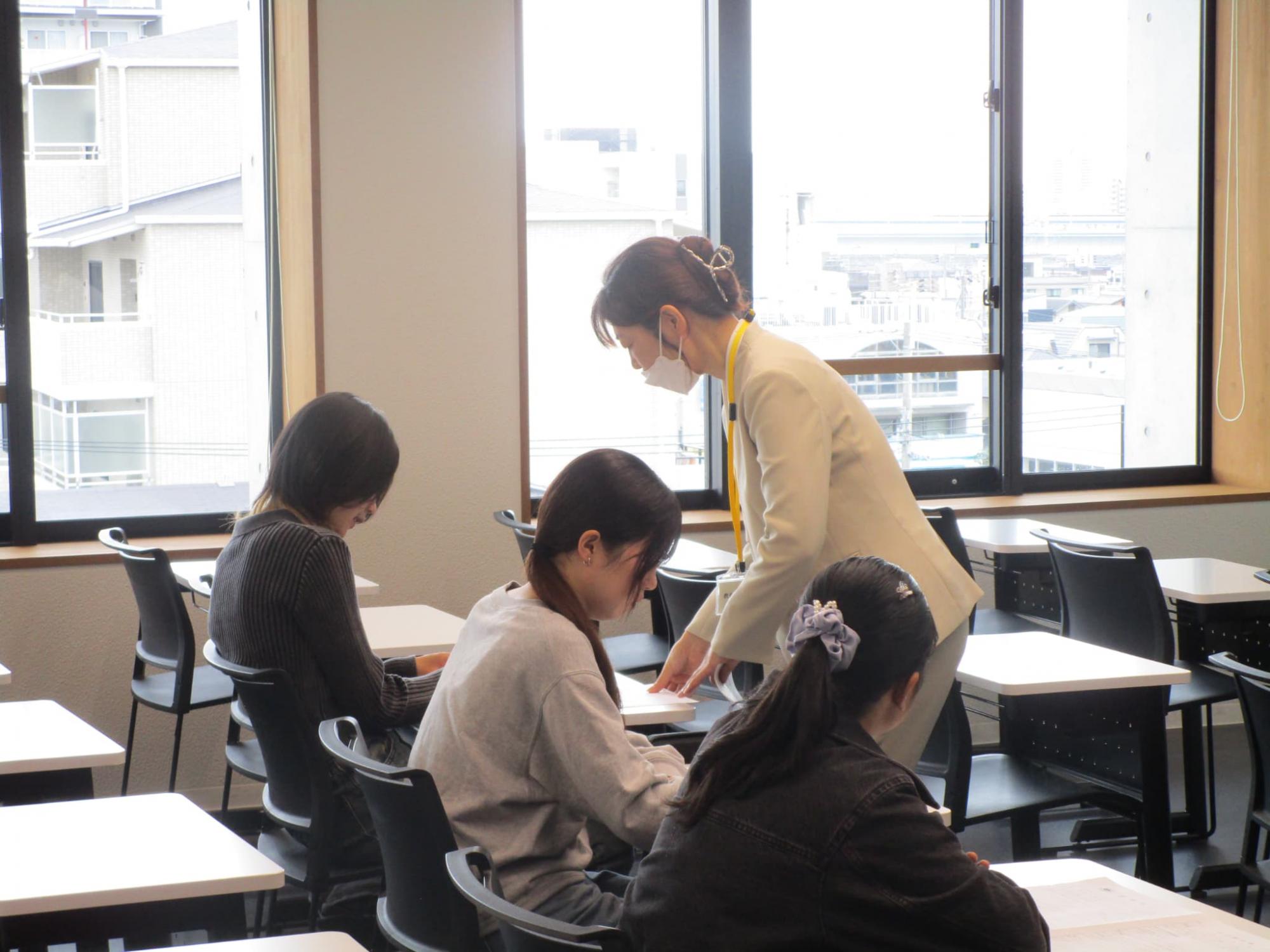 10月18日、履歴書添削会を開催しました。ライフデザイン総合学科、医療事務総合学科の学生が自分で書いた履歴書を持参し、その内容をカウンセラーが添削します。学生3名に対してカウンセラー1名で、90分間かけて履歴書をブラッシュアップしました。参加した学生からは「自分の魅力を引き出してくれた」、「文の繋げ方や適切な言葉をその都度、一緒に考えてくれて助かった」などの感想が寄せられました。書きあがった履歴書をもとに、11月8日に面接練習会が開催されます。