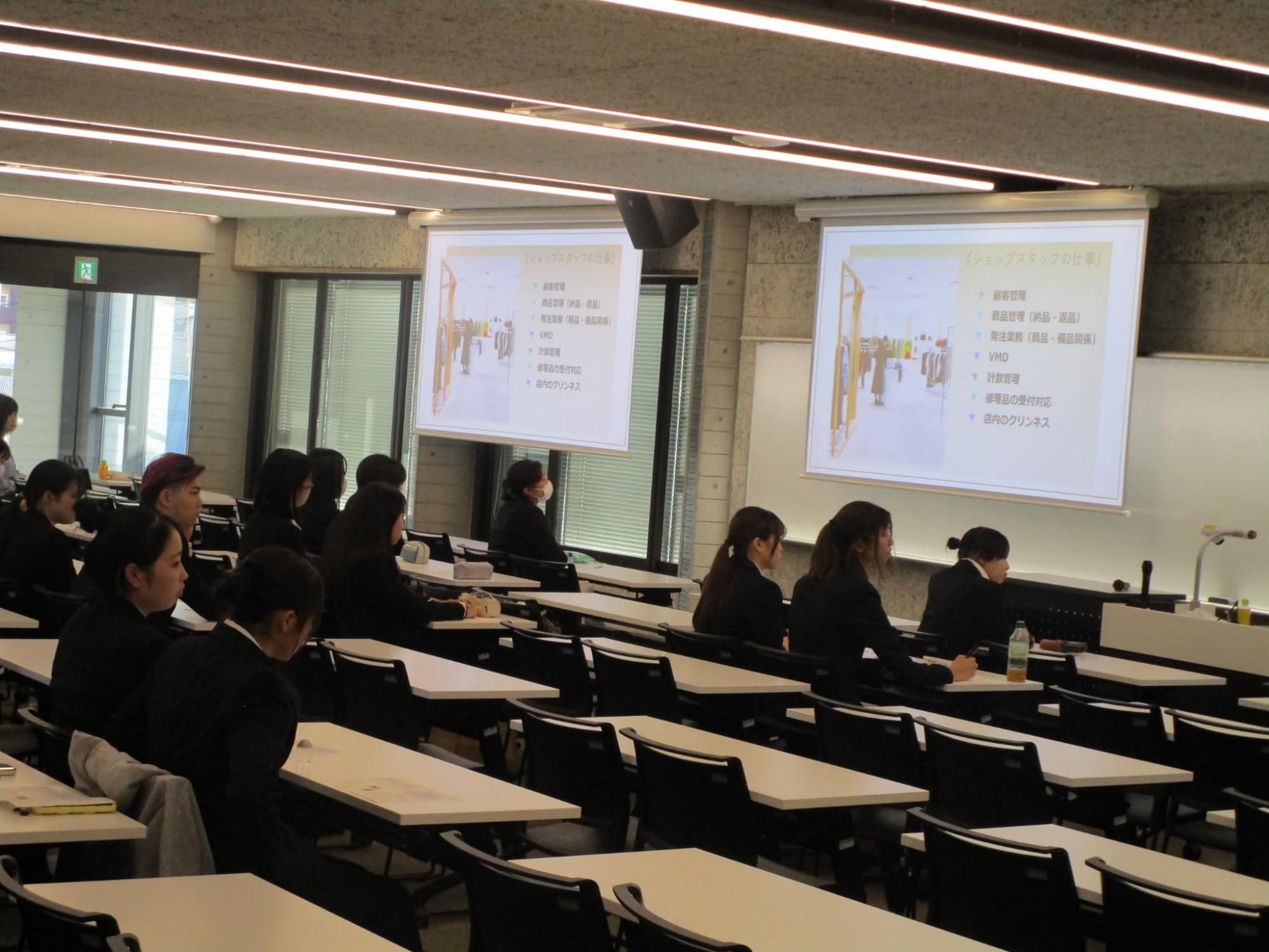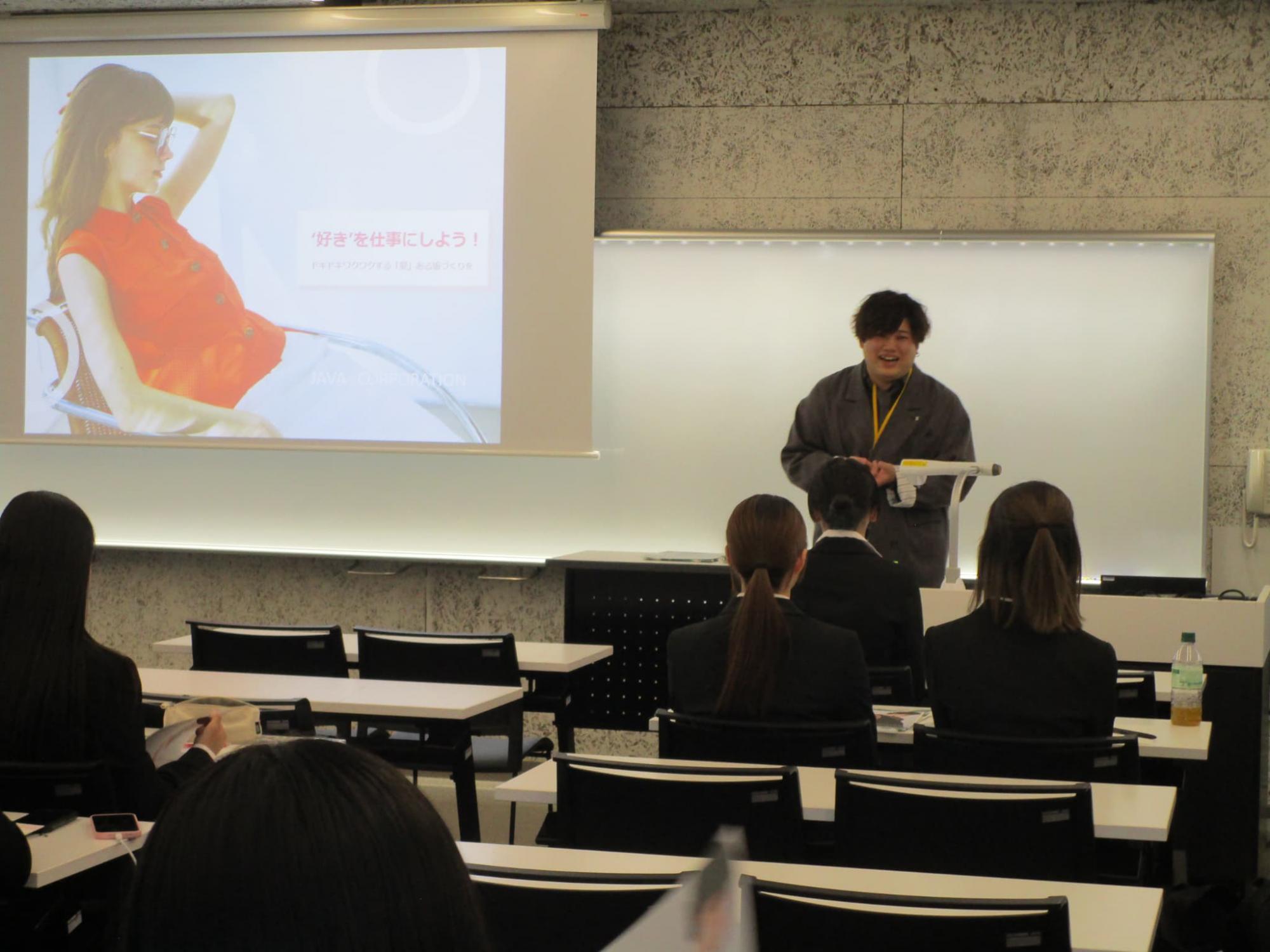 10月23日、お仕事発見セミナー(アパレル業界)を開催しました。お仕事発見セミナーは、これから就職活動をスタートする短期大学1年生へ向けて企業人事担当者より仕事についてお話をしていただくことにより、働くイメージを広げていくことを目的に実施しているイベントです。初回は、アパレル企業を代表して 株式会社ジョイックスコーポレーション様、株式会社ジャヴァコーポレーション様をお招きして開催いたしました。参加した学生からは、「お話を聞いてみないと分からないことがあると気づけた」や「同じアパレル企業でも、働き方や理念に違いがあることが分かった」などの感想が寄せられました。毎週、木曜日を基本に2026年1月まで継続して実施していきます。
